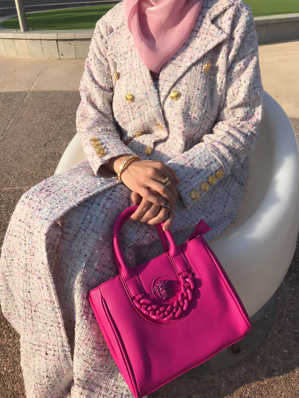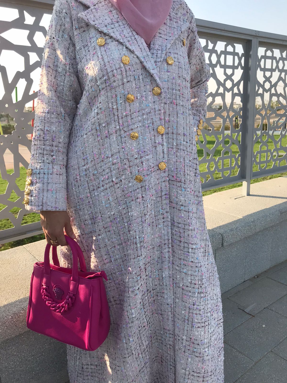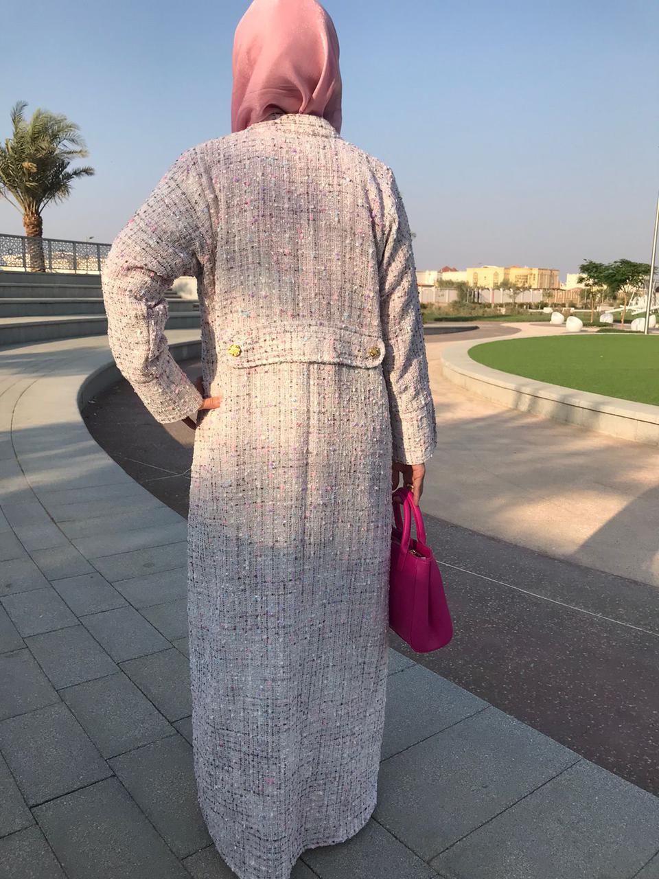Blazer-cut abaya made from tweed fabric in off-white