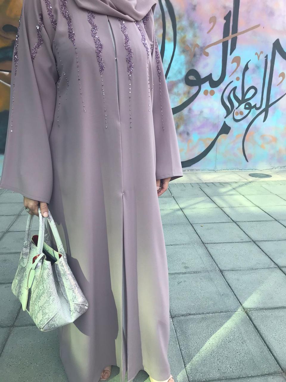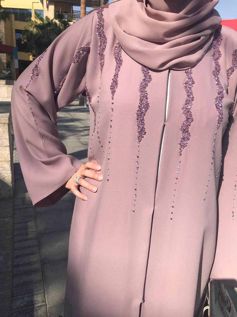 Abaya made from nada fabric with delicate beadwork on the abaya