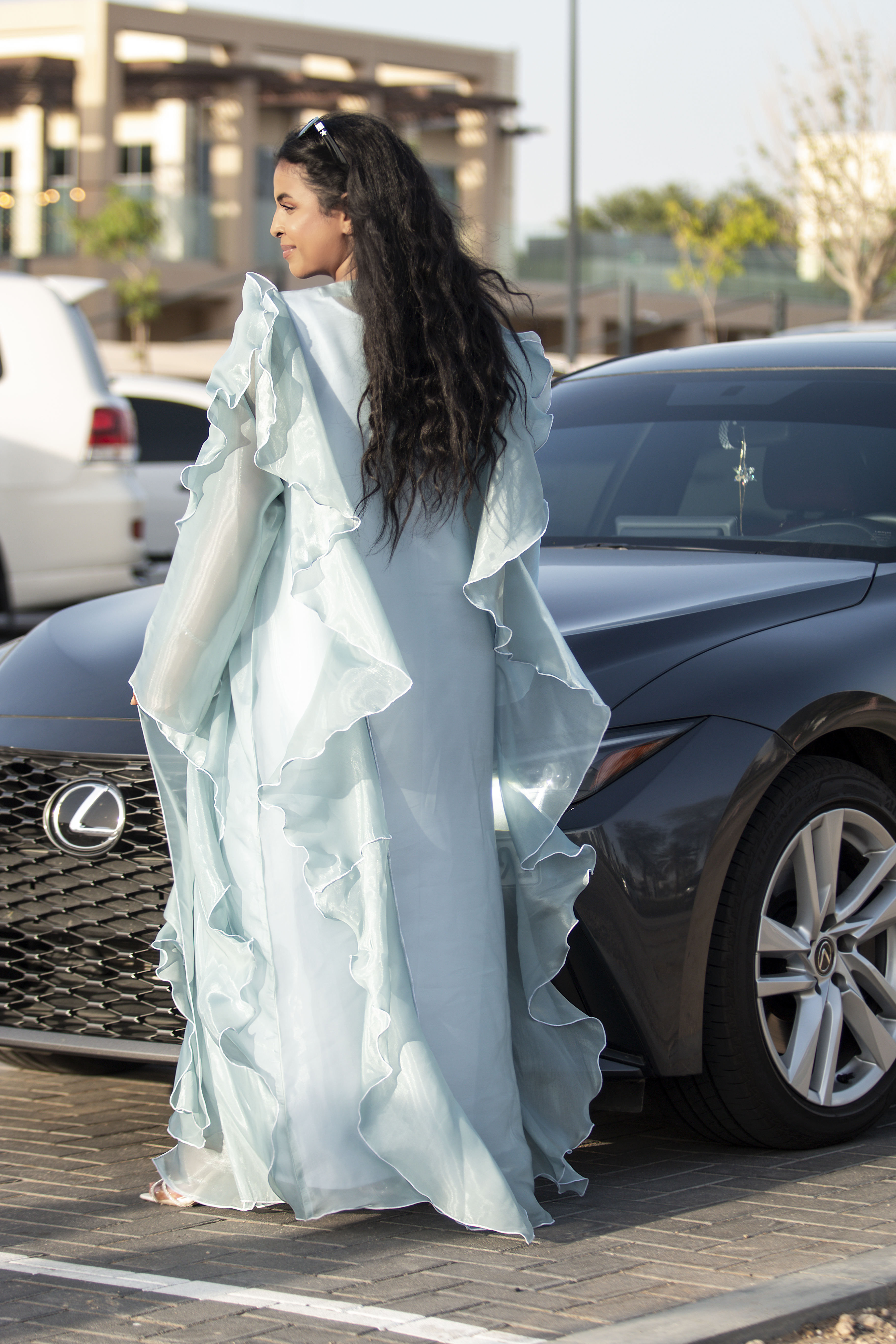 Organza abaya in a ruffles cut with a dress in the same color