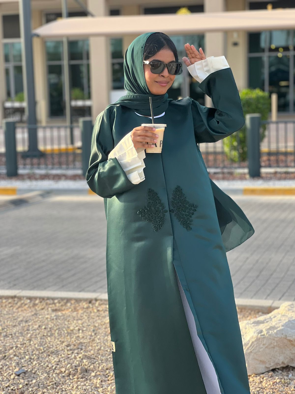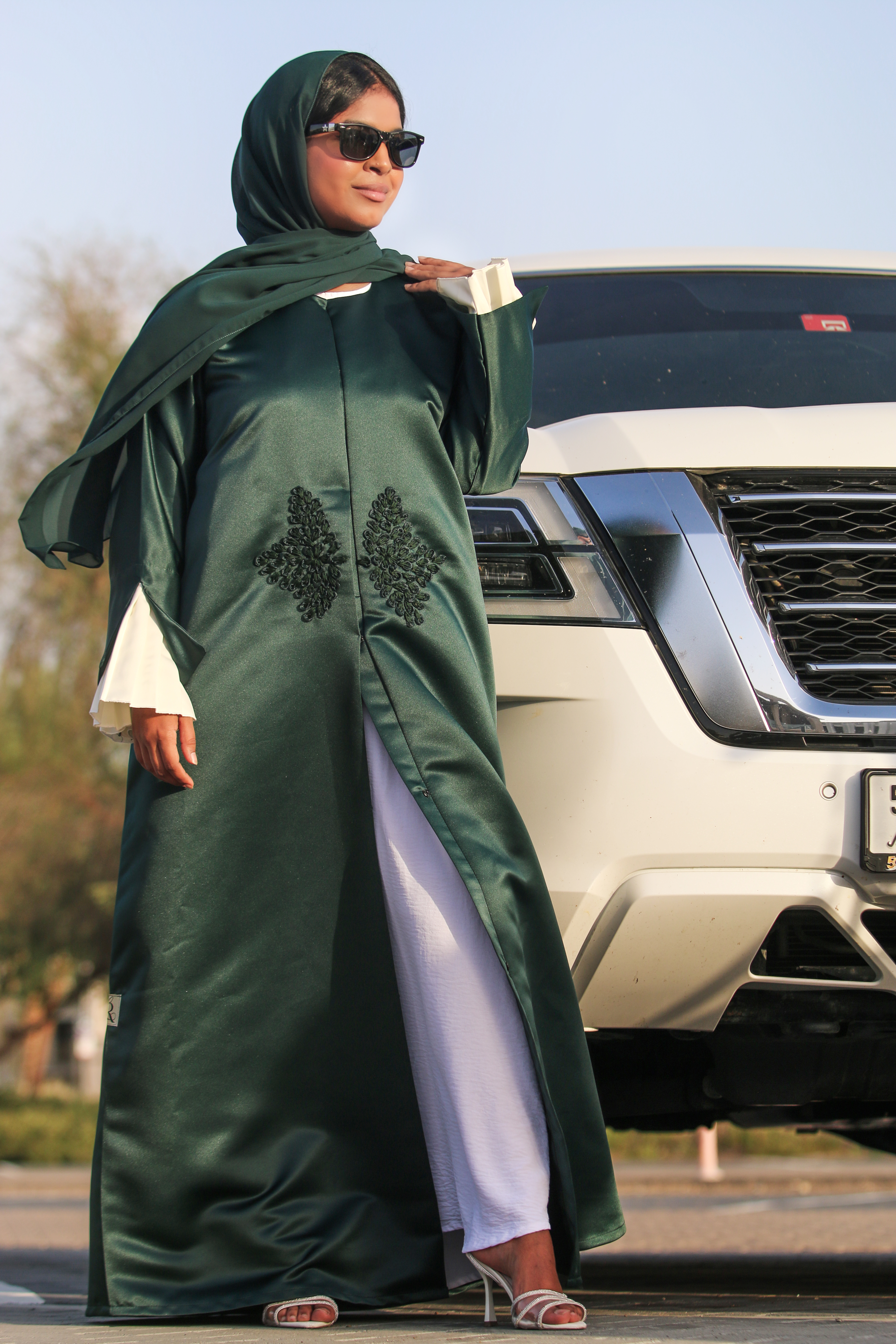 Abaya made from satin fabric with delicate embroidery on the abaya